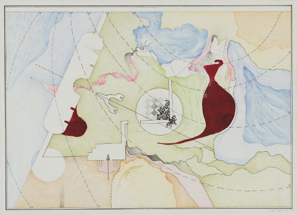 ink and colour pencil on paper, 42 X 60cm.